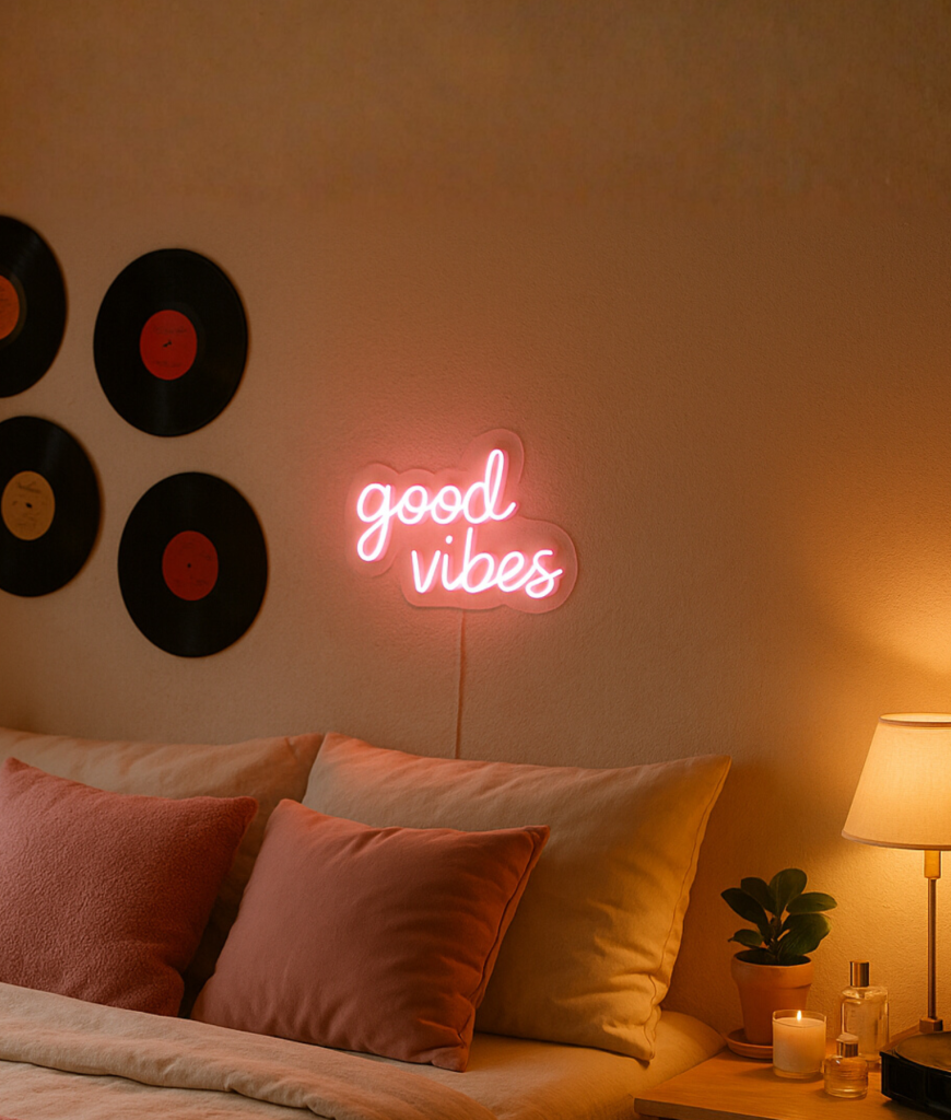 Sommige nachten hebben geen plan nodig, alleen de juiste energie. En die begint met Good Vibes Neon. Dat zachte roze licht zet direct de toon: relaxed, gezellig, een beetje funky. Of je nu een houseparty aan het bouwen bent, een after host of gewoon een kamer wilt die nooit saai voelt – dit is het licht dat je nodig hebt.