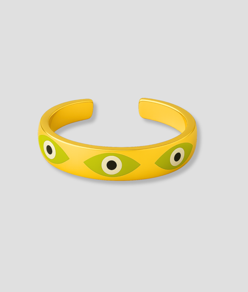 Fris, vrolijk en vol betekenis – deze gouden ring met limegroene oogjes is een echte eyecatcher. De heldere kleur geeft je look een speelse twist, terwijl het oogmotief bescherming en positiviteit uitstraalt. Dankzij het verstelbare design past hij altijd perfect. Een opvallend sieraad dat je outfit direct laat stralen!