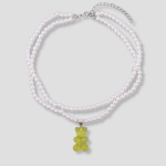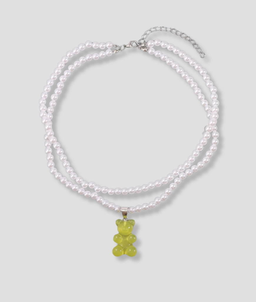 Deze gele gummy bear is het soort hanger dat je draagt als je zonder een woord te zeggen wilt laten weten dat jij de zon bent in elke ruimte waar je binnenloopt. Fel, vrolijk, maar met die speelse knipoog die iedereen herkent van nachten die uit de hand lopen op de dansvloer. De parelketting houdt het clean en classy, terwijl die gummy eronder hangt als een reminder dat jij ook gewoon een amigo bent die graag plezier maakt.