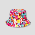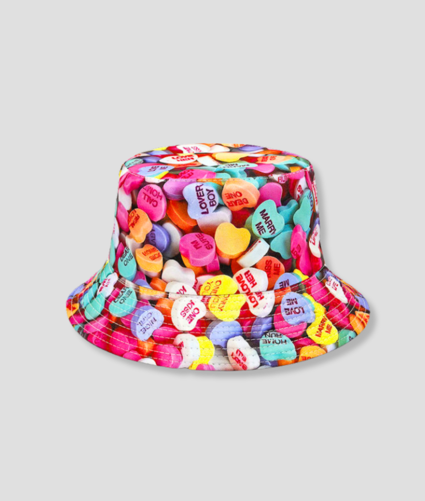 Deze bucket hat is pure suikerenergie voor je outfit, vriend. Kleurrijke hearts all-over, met van die cheeky love quotes die je look laten glimlachen nog vóór jij het doet. Je stapt de club in en iedereen leest mee. Niet klef, wel speels. Dit is die “ik ben hier voor de fun én de foto’s”-energie die een avond vanzelf een verhaal maakt.