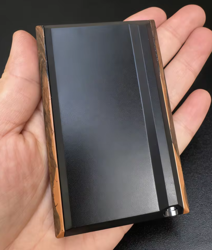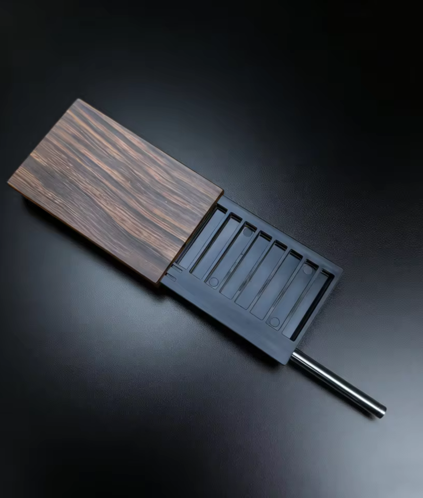 Deze snuifbox met houten afwerking heeft een strak en rustig ontwerp. De bovenkant schuift soepel open en geeft toegang tot meerdere vakjes aan de binnenkant. Door het compacte formaat neem je hem makkelijk mee zonder dat hij opvalt.