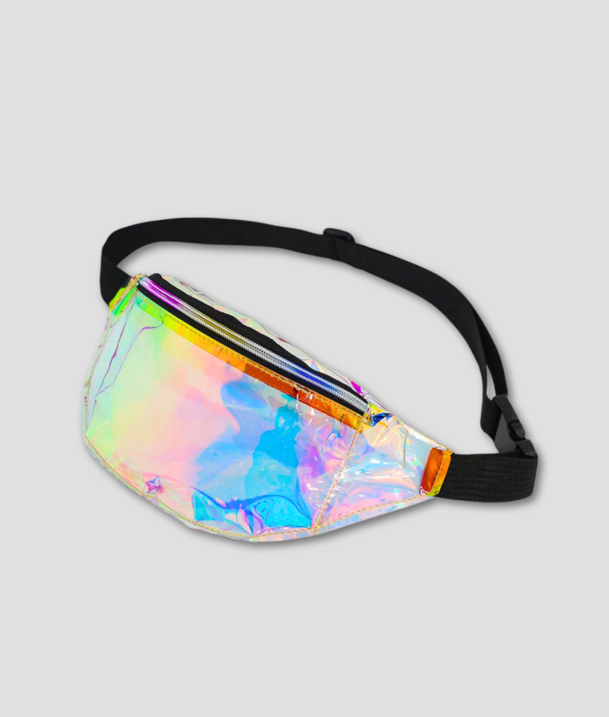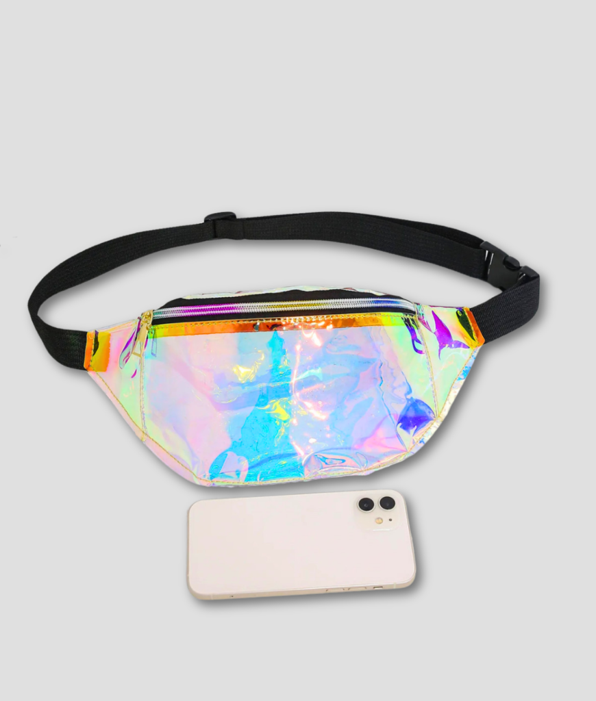 Kort en helder, maat: als jij je essentials strak bij je wilt houden en tegelijk het licht wilt laten praten, dan is de Holografische Heuptas jouw wingman. Klik ’m om, stap de dansvloer op en laat de kleuren de rest doen. Jij schrijft de scènes, dit tasje geeft ze glans.
