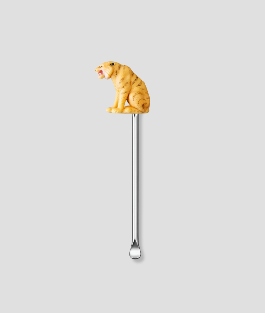 Dit schepje heeft een mini-tijger bovenop, wat het niet alleen een stoere uitstraling geeft, maar ook een avontuurlijke en gedurfde touch toevoegt aan je dagelijkse dosering. Het roestvrijstalen schepje is duurzaam, hygiënisch en eenvoudig schoon te maken, en biedt de perfecte combinatie van functionaliteit en stijl.