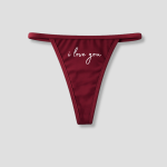 Deze bordeauxrode dames string heeft een witte tekst “i love you” in een handgeschreven stijl. De opdruk staat centraal en geeft het ondergoed een romantische uitstraling.