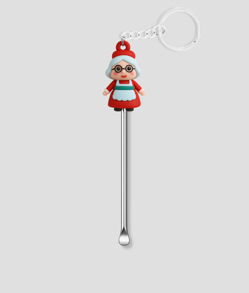 Deze oma ziet eruit alsof ze nét uit een kerstfilm is gestapt, maar dan met de energie van iemand die al drie koffie te veel op heeft. Haar vrolijke outfit, rode muts en brilletje geven meteen dat gezellige oma-gevoel waar iedereen stiekem fan van is. Het is zo’n charmante verschijning die je sleutelbos spontaan een stuk leuker maakt zonder dat je er moeite voor doet, amigo.