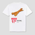 Deze gedraaide ovenkaasstengel zegt eigenlijk alles zonder dat jij een woord hoeft te zeggen. Het is zo’n snack die iedereen herkent van de kantine, het station of die ene after waar iemand ineens “ik heb snacks” riep alsof het een reddingsactie was. Op je rug ziet het eruit als pure studentenvibe: simpel, goudbruin, een beetje crunchy, precies zoals het leven soms hoort te zijn. Het is een print die lacht zonder grap en toch meteen binnenkomt.