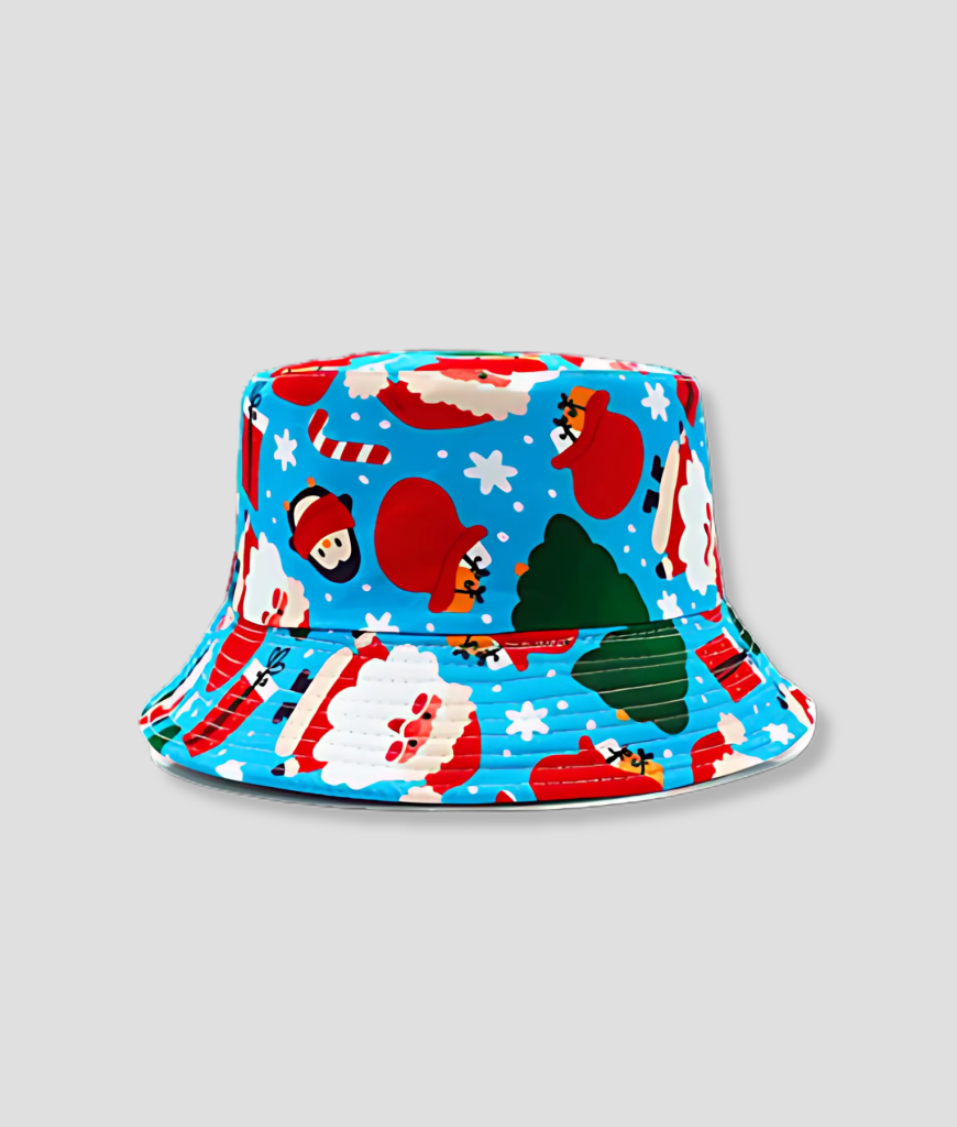 Yo, vriend. Dit is het hoedje dat de maximale energie en het feestelijke van jouw winter vangt. Je duikt het foute kerstfeest in, de glühwein stroomt, de muziek knalt en jij straalt pure, onvervalste kerstsfeer uit. De Kerst vibe Bucket Hat is die must-have met een felblauwe achtergrond en een vrolijk kerstthema. Dit hoedje zegt precies wat jouw winterse weekenden al jaren doen: vol energie, super feestelijk en ideaal voor de winter. Met kerstman, kerstbomen, zuurstokken en sneeuwvlokken in rood, wit, groen en zwart erop, is dit ding de perfecte gangmaker. Dit is jouw statement, amigo, want iedereen weet: jij brengt het feest, zelfs als het vriest.