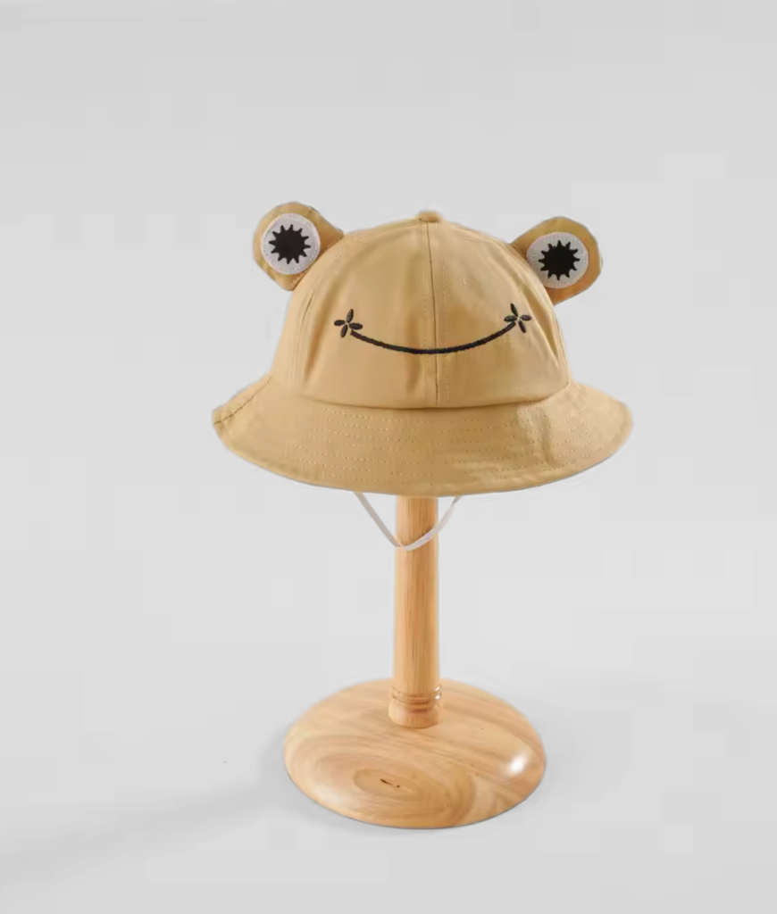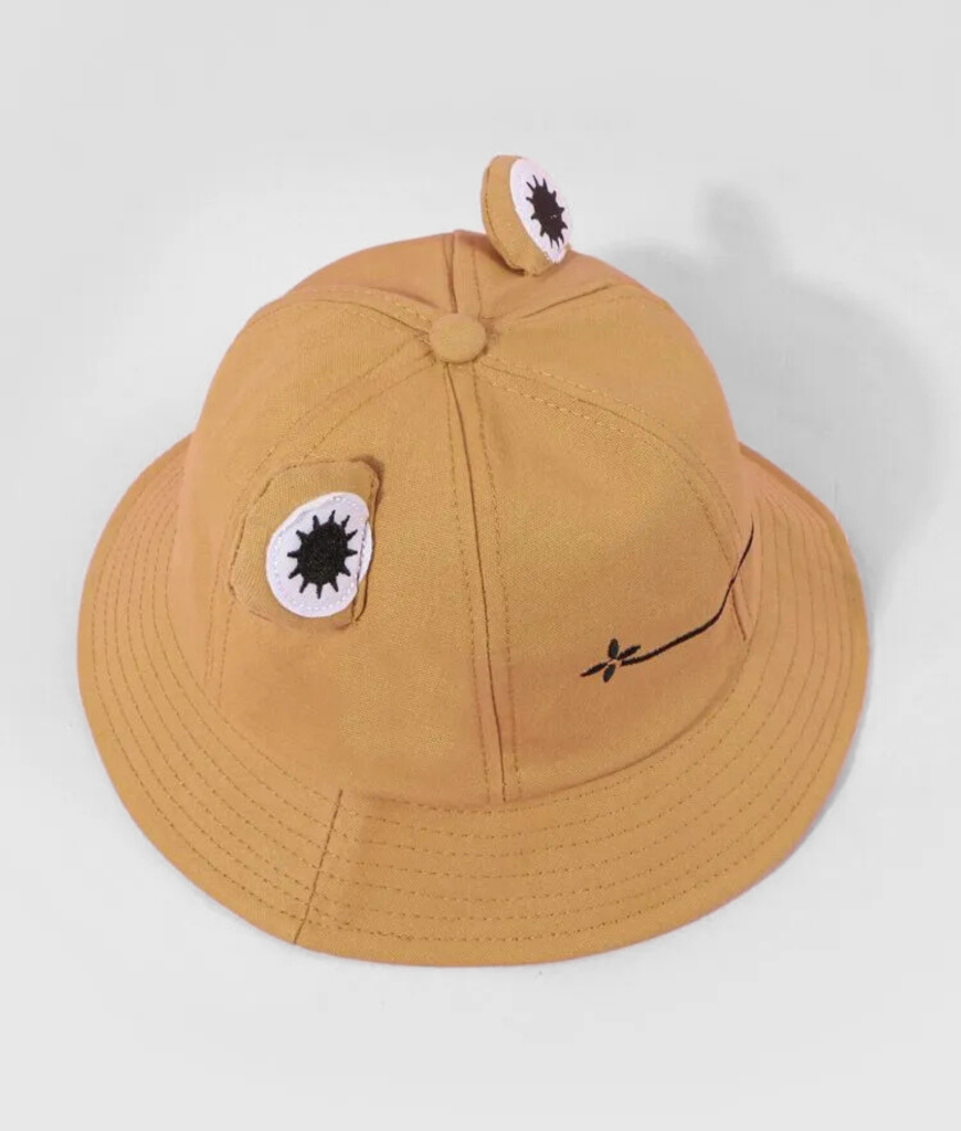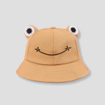 Deze bruine bucket hat met kikkergezicht en schattige oogjes steelt gegarandeerd de show. Perfect voor een speelse en vrolijke look, ideaal voor festivals of gewoon een leuke toevoeging aan je outfit!