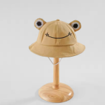 Met het schattige kikkerdesign en de grote oogjes heeft deze hoed een vrolijke uitstraling. De bruin kleur en het simpele patroon zorgen voor een balans tussen fun en stijl.