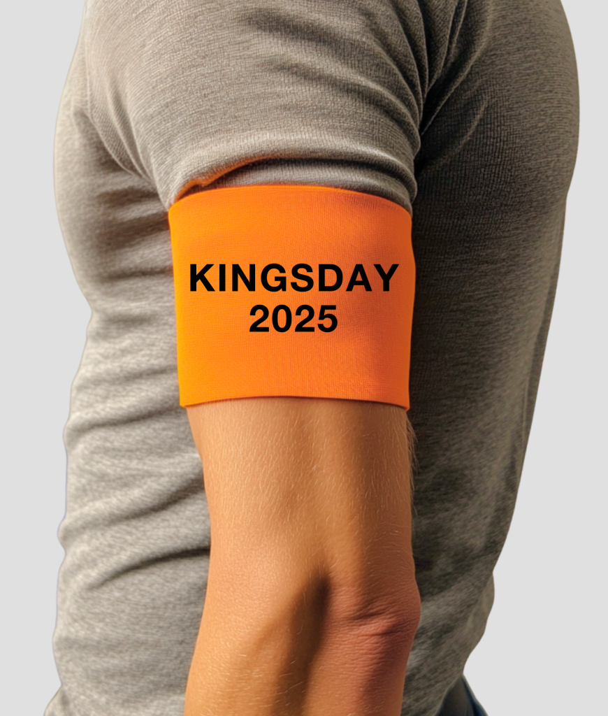 Deze band knalt oranje alsof hij rechtstreeks uit een Koningsdag markt komt maar dan met stijl. De tekst Kingsday 2025 staat er stevig op en laat meteen zien waar jij voor gaat. Het zegt niet dat je de baas bent maar iedereen voelt het wel. Het past bij de vibe van een dag die begint met muziek op straat en eindigt ergens op een dansvloer waar geen klok hangt. Studenten en festivalgangers herkennen dit soort humor en sfeer direct. Je draagt het omdat je de energie van die dag snapt.