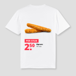 De print straalt pure frituurwijsheid uit. Zo’n shirt draag je niet om cool te doen, maar omdat je snapt dat stijl soms gewoon begint bij de snackmuur. Het voelt als staan bij een festivalfoodtruck terwijl je vrienden roepen dat je “er maar eentje moet pakken dan.” Het is een soort stilzwijgende inside joke tussen jou en iedere legende die dit leven leeft.