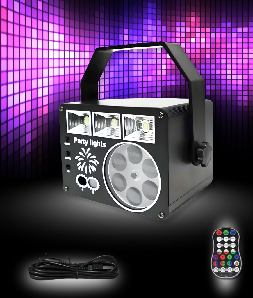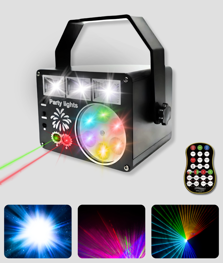 Deze party lamp is echt next level! Met felle LED’s, vette lichteffecten en rode en groene lasers heb je meteen een complete lichtshow in huis. Met de afstandsbediening switch je easy tussen verschillende standen, zodat je in no-time de perfecte party vibe creëert.