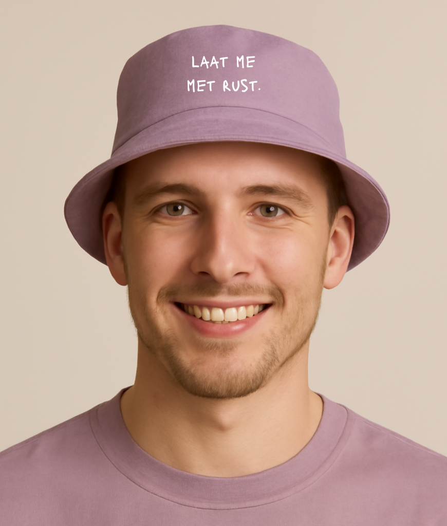 De “Laat me met rust” bucket hat is perfect voor festivals, drukke dagen of momenten waarop je geen zin hebt in small talk. Stijlvol, duidelijk en een tikkeltje passief-agressief — precies zoals jij ‘m nodig hebt.
