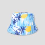 Met palmbomen, zonnige gele accenten en een blauwe lucht, is deze hoed het perfecte accessoire voor je zomerse look. De frisse kleuren en het tropische thema brengen je direct in de vakantiestemming.