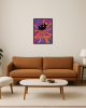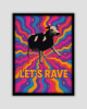 Lijst met een koe en de tekst “LET’S RAVE” op een psychedelische achtergrond. Zorgt voor een energieke sfeer in je kamer.