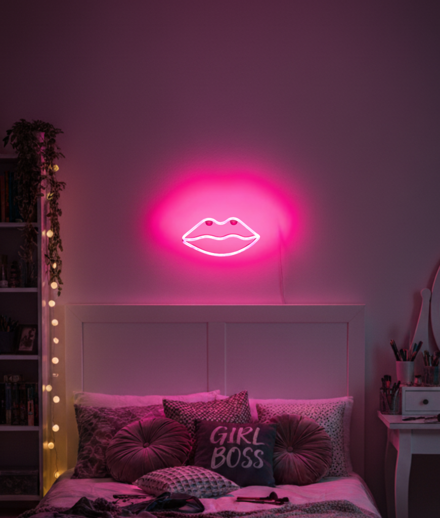 Lips Neon brengt die clubvibe naar binnen. Denk aan donkere ruimtes, harde beats, een beetje rook in de lucht en mensen die lachen zonder reden. Het licht geeft een roze gloed die alles wat er gebeurt nét iets filmischer maakt. Perfect voor de avond vóór het feest, of de after waar niemand wil dat het stopt.