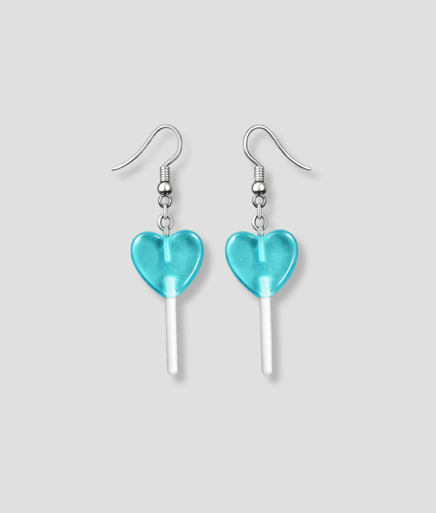De lichtblauwe hartjes-lolly oorbellen zijn geschikt voor dagelijks gebruik. Ze zitten comfortabel en trekken niet aan het oor, ook bij langdurig dragen.