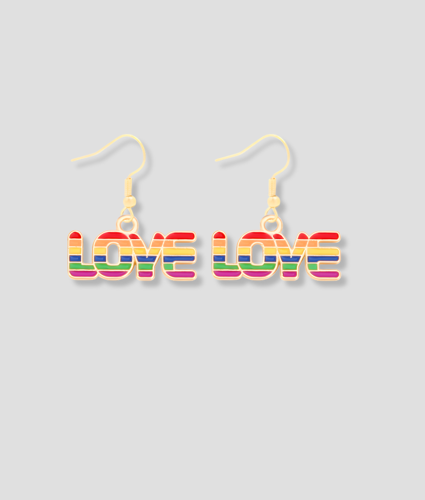 Maat, deze Love Love oorbellen zijn precies het soort statement dat je maakt als je spiegelbeeld je aankijkt en zegt: ja hoor, jij gaat weer legendengedrag vertonen vanavond. Eén blik op die regenboogletters en je voelt het al kriebelen. Dit zijn oorbellen voor mensen die niet voorzichtig leven, maar voluit, alsof elke avond een nieuw hoofdstuk moet worden.