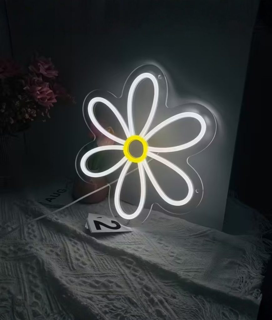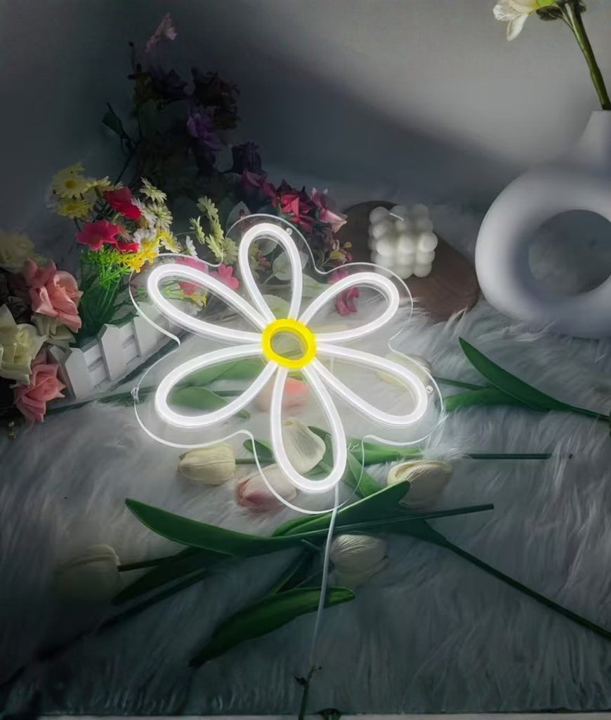 De bloemvorm is strak, speels en precies herkenbaar. De glow is clean en modern waardoor deze neonlamp perfect past in zowel een rommelige studentenkamer als een strak ingerichte living. Hang hem standaard aan de muur of zet hem neer tussen je planten voor een extra levendig effect.