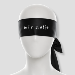 Deze blinddoek is gemaakt voor momenten waarop jullie weten wat de bedoeling is. Ogen dicht, focus aan. De tekst mijn sletje zet meteen de toon en laat weinig ruimte voor twijfel. Het is direct, licht brutaal en bedoeld om spanning op te bouwen zonder woorden.