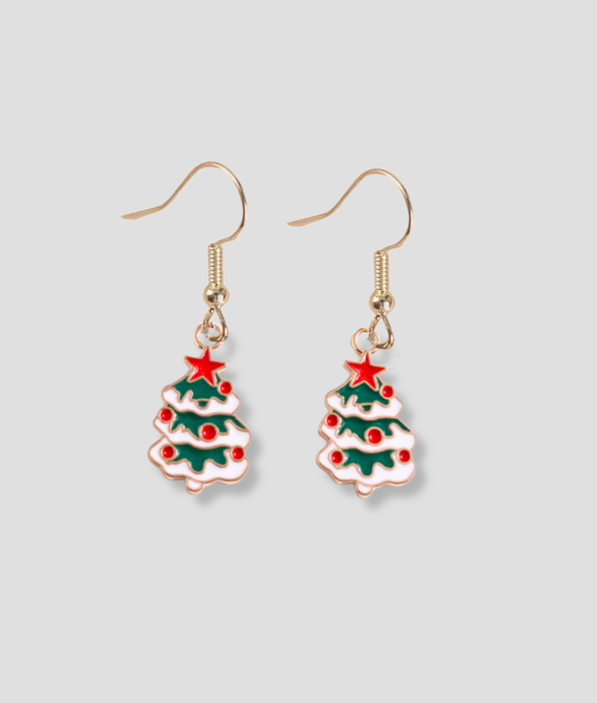 Mooiste Kerstboom is precies wat de naam belooft: een mini-kerstboom aan je oor, maar dan met genoeg stijl om niet te voelen als verkleedpartij. De groene lagen, de rode ster bovenop, de kleine rode accenten ertussen; alles klopt op een manier die zowel feestelijk als charmant is. Ze zien eruit alsof je ze draagt tijdens een avond die begint met warme choco en eindigt met iemand die spontaan kerstmuziek heeft opgezet omdat het “nu gewoon kan”.