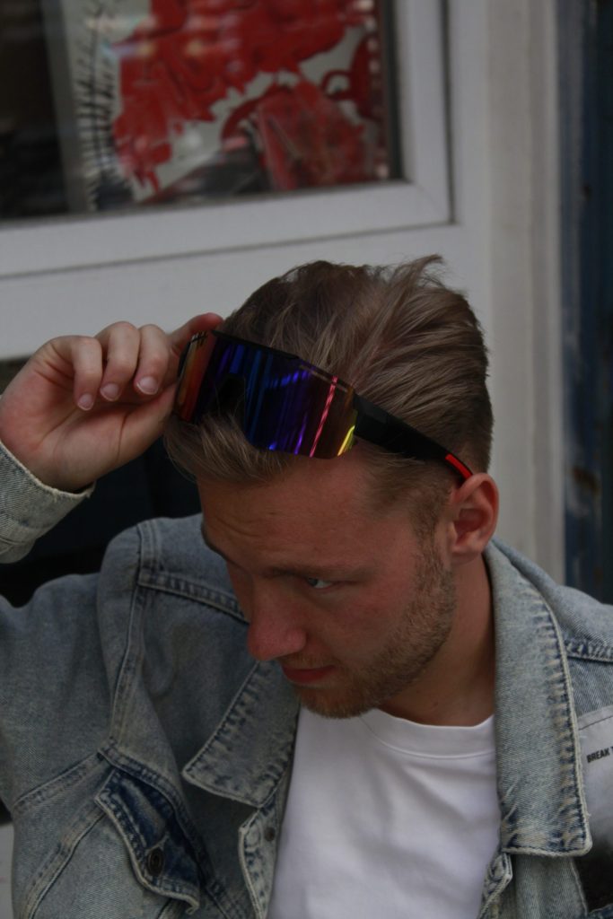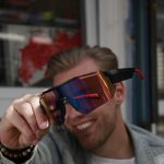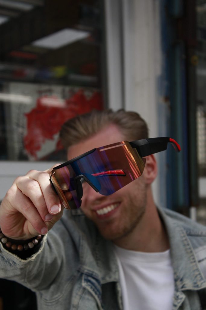 Je stapt het terrein op, de eerste kick drukt je borstkas plat en jij zet ’m op. Moros. Zwart frame, rode details en een brede, iriserende shield-lens die van groen naar paars schuift alsof de stage je persoonlijk begroet. Dit is niet zomaar een bril—dit is je helm voor de nacht. Jij komt niet kijken, jij komt het tempo bepalen.