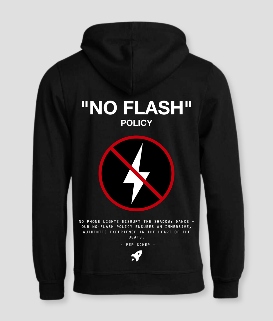 Keiharde zwarte *NO FLASH* Hoodie, Perfect voor op jouw volgende festival of rave. (Ook lekker voor thuis)