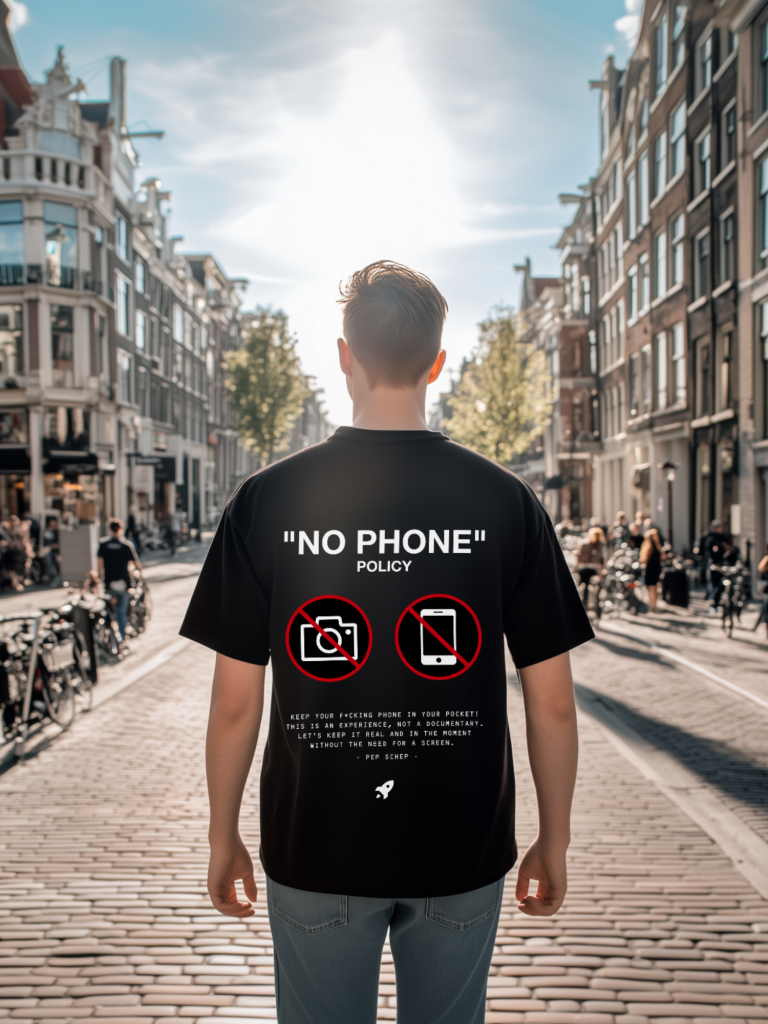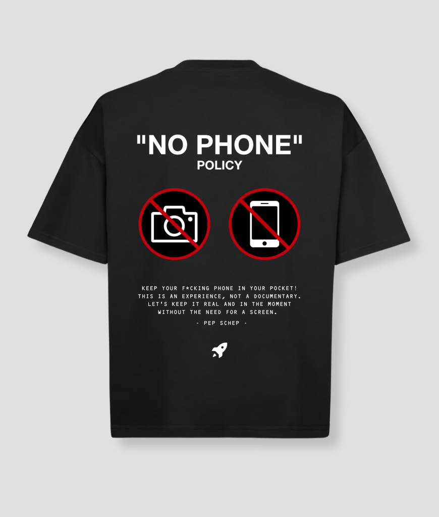 NO PHONE NO CAMERA POLICY, Laat je elektronica maar lekker thuis liggen.