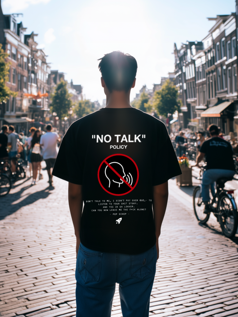 NO TALK POLICY, Vermijd gesprekken met dit T-shirt