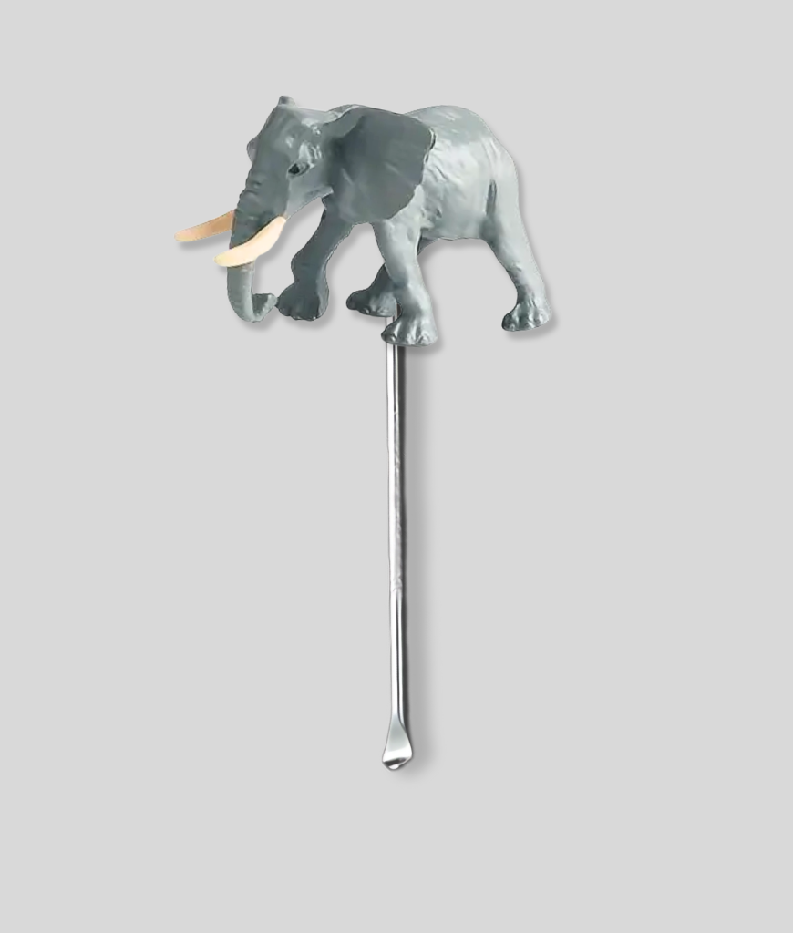 Dit olifant schepje is altijd paraat voor feest. Groot dier bovenop, klein schepje eronder – precies wat je nodig hebt op de camping of in de rave.