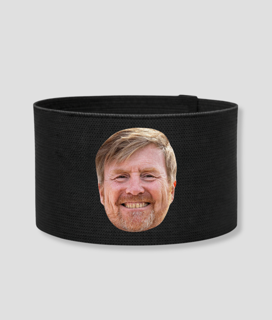 Deze zwarte aanvoerdersband met het gezicht van Koning Willem-Alexander is een grappige en unieke keuze voor de leider op het veld. Het zorgt voor een opvallende en humorvolle uitstraling tijdens elke sportwedstrijd.