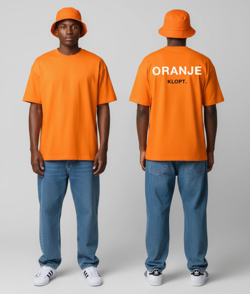 Oranje Klopt. Net als jouw vibe! Draag dit shirt met trots en laat zien dat jij snapt hoe het moet. Ideaal voor feestjes, festivals en alles daartussenin.