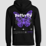 Naast het indrukwekkende ontwerp biedt de hoodie ook comfort. De zachte stof houdt je lekker warm, en de zwarte kleur met de paarse vlinderprint maakt het makkelijk om te combineren met andere kleding. Het is de perfecte hoodie voor zowel stijl als comfort.