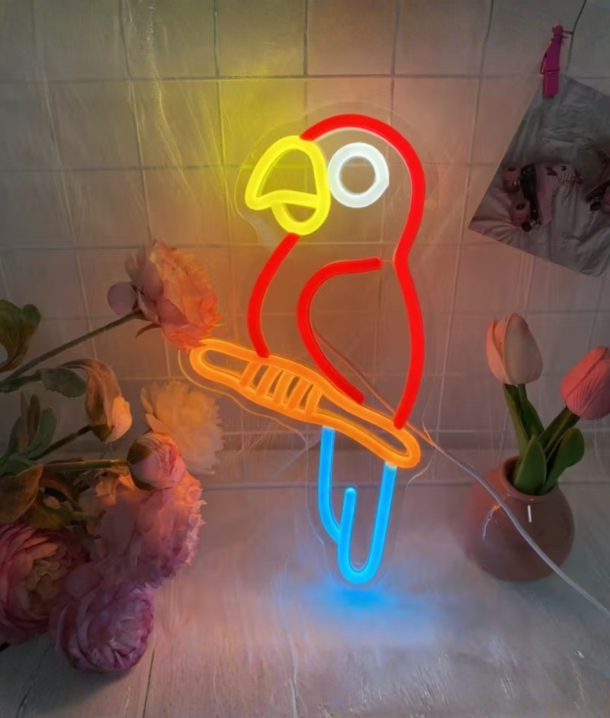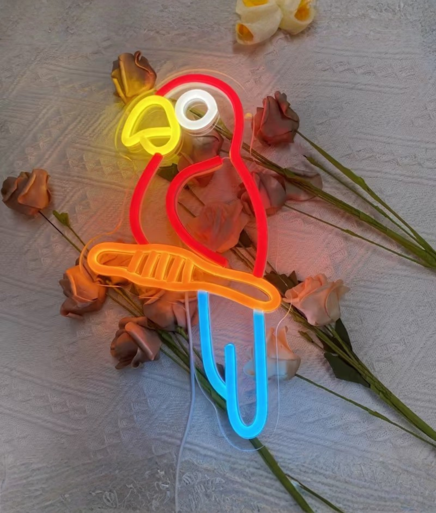 Papegaai Neon voelt als een warme dag ergens waar je eigenlijk hoort te zijn. Het zachte maar duidelijke licht geeft je kamer een speelse gloed die meteen opvalt. Je krijgt vanzelf zin om te chillen, kletsen en net even langer op te blijven. Dit is geen stille lamp. Dit is een lamp die praat zonder geluid.