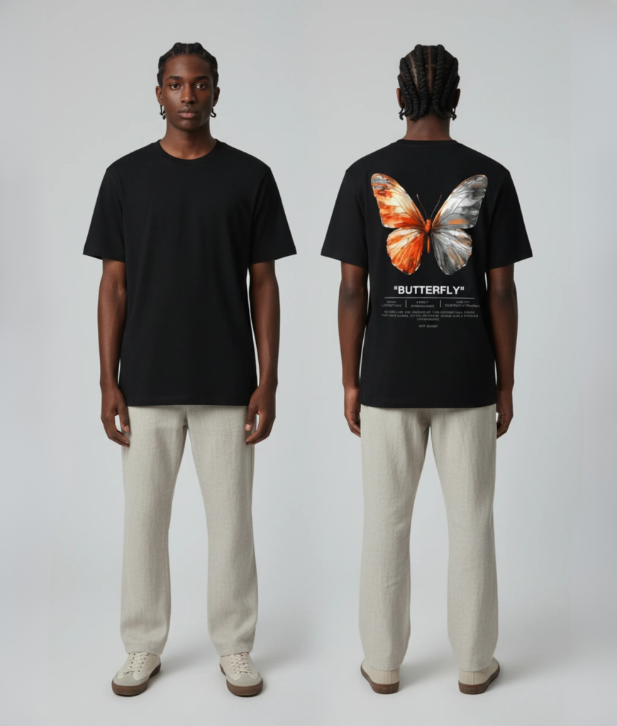 Zwart op zwart. Vlinder op je rug. L’Art du Papillon is stil, scherp en donker. Geen logo’s, geen praatjes. Alleen vorm en vervorming. Gemaakt voor nachten zonder einde.