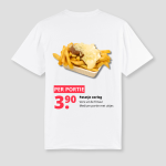 Patatje oorlog op een shirt zegt eigenlijk alles zonder iets te hoeven uitleggen. Je ziet die sausmix en je voelt meteen de after-vibes van een nacht die veel langer duurde dan gepland. Het is het soort print dat je maatjes laat lachen nog voor je iets hebt gezegd, omdat ze exact weten hoe jouw weekend meestal eindigt.