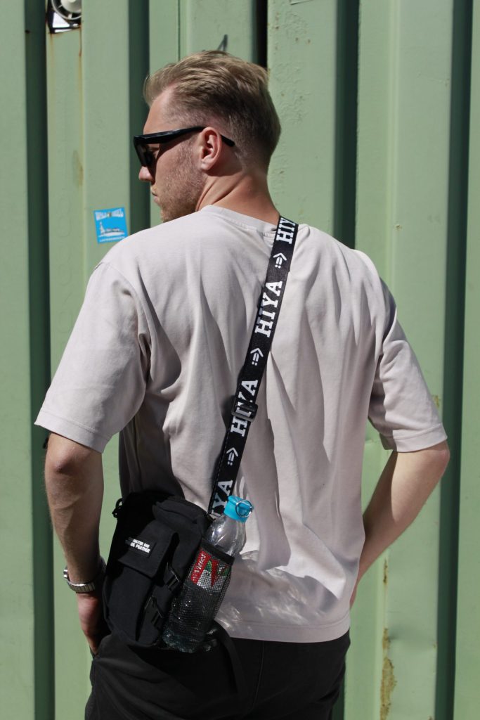 Gooi ’m crossbody over je hoodie of jas en vergeet dat ’ie er zit. De band stelt soepel af en snijdt niet, het tasje blijft stabiel wanneer je van house groove naar hardstyle sprint schakelt. De bottle holster is elastisch en verstelbaar: waterflesje? Past. Festivalblikje? Ook goed. Loop je, spring je, ren je naar de volgende stage—je drinkt blijft zitten en je flow blijft heel.