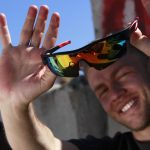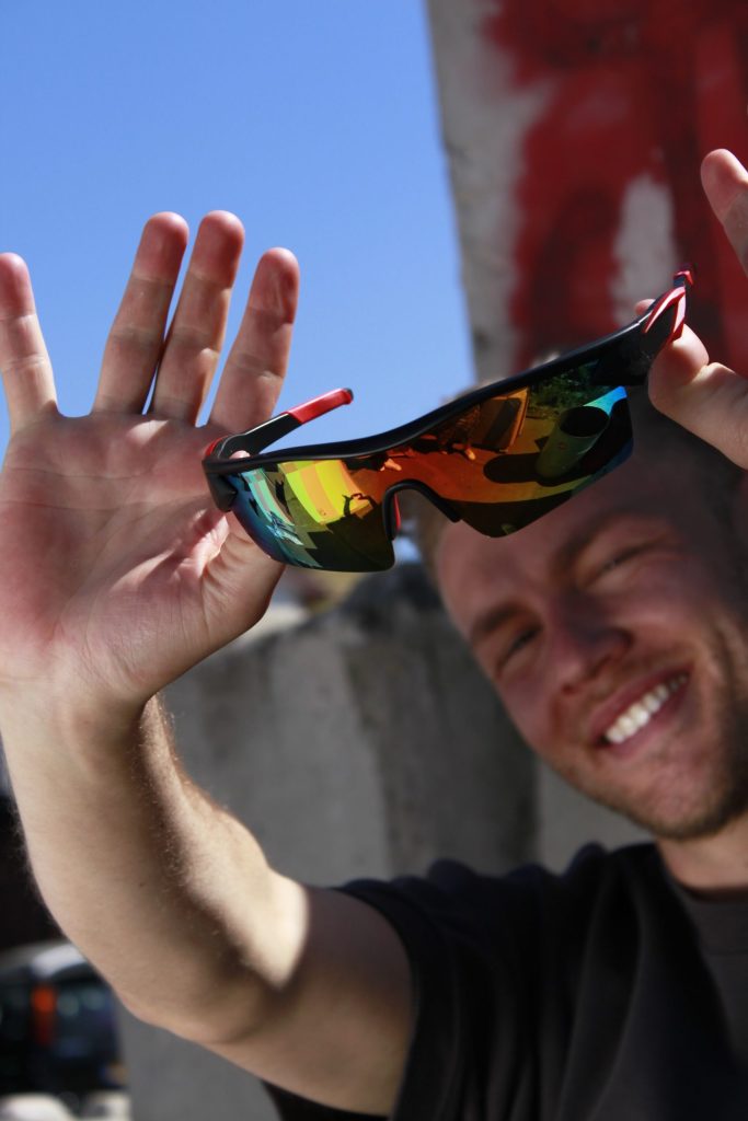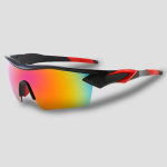 Met z’n futuristische shape, spiegelende regenboogglazen en rode accenten schreeuwt deze bril snelheid. Denk aan wielerheld meets technolegende: strak, scherp en altijd in beweging. Deze bril pakt licht als een discobal en laat het dansen met jou mee.