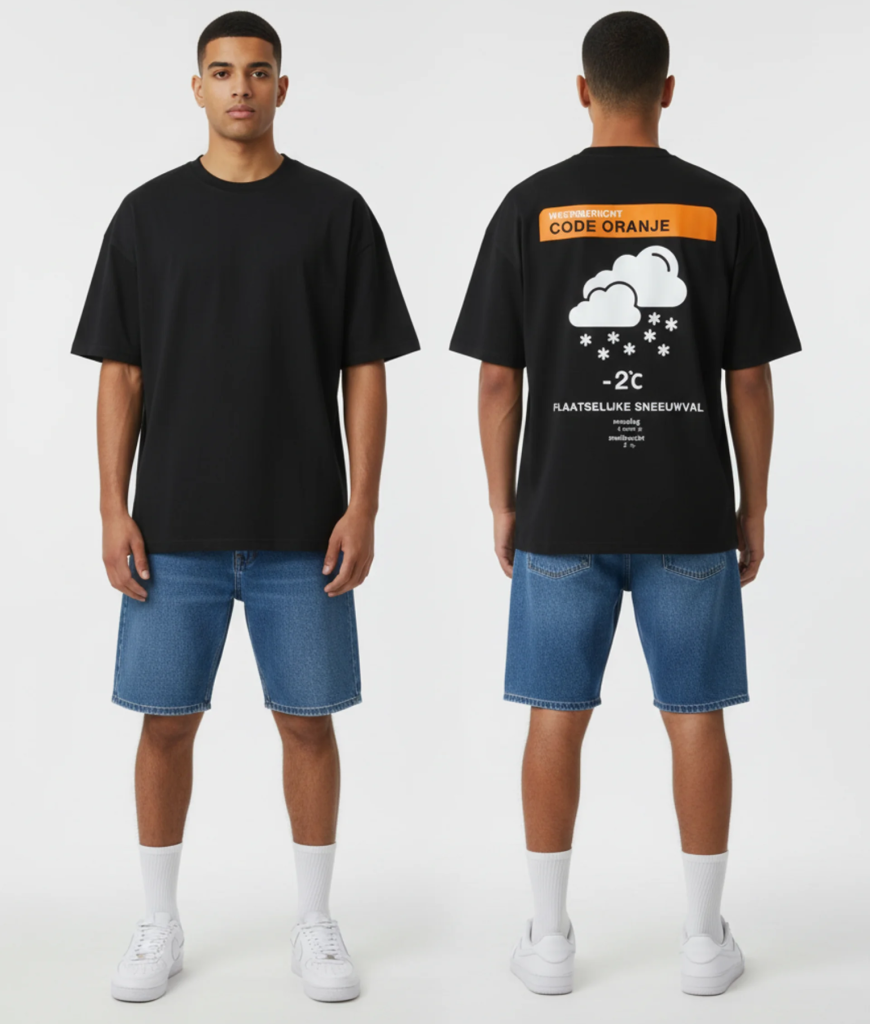 Het weerbericht voor Koningsdag 2025 is plaatselijke sneeuwval. Nou hoef ik de website bezoekers van pepschep natuurlijk niet uit te leggen wat we daar mee bedoelen haha… Kijk ook zeker de onderkant van het shirt wat dit design af maakt.