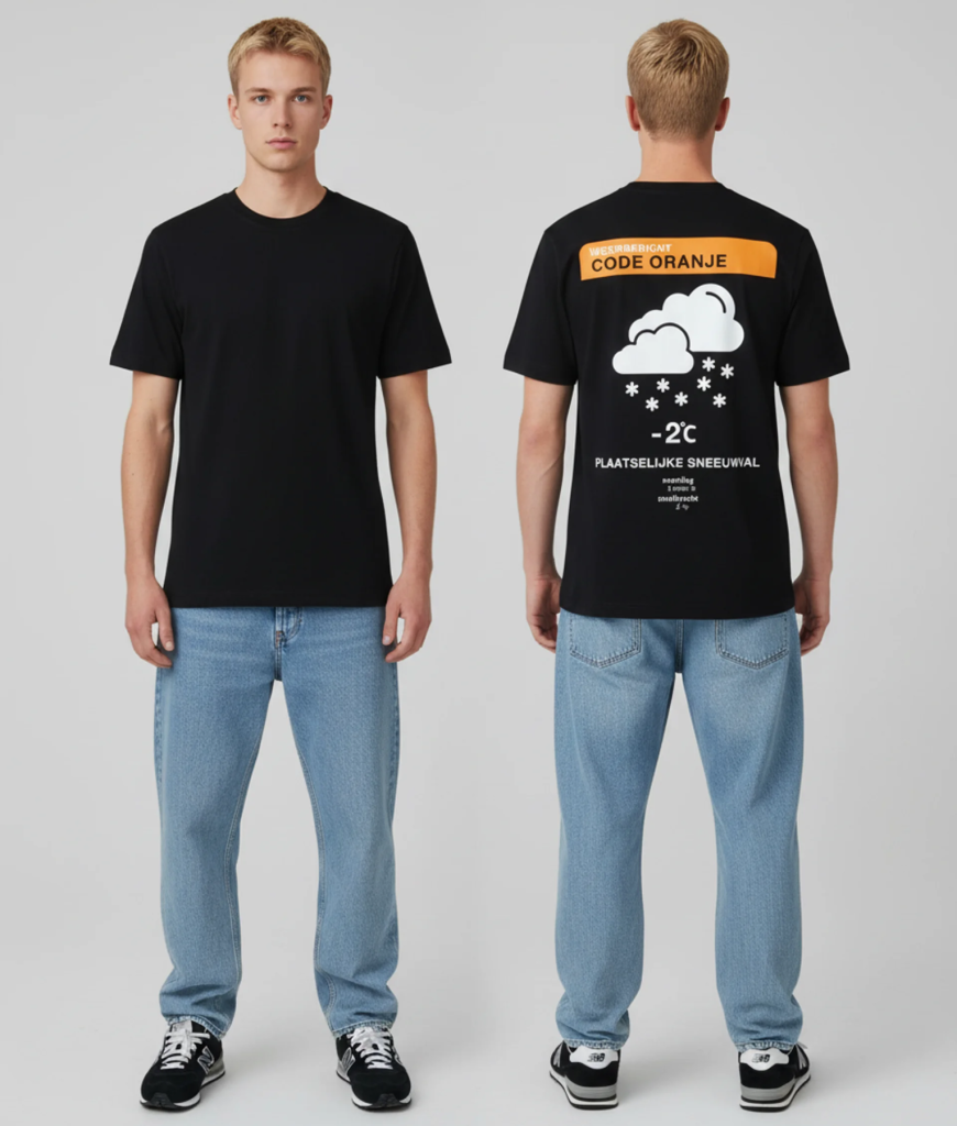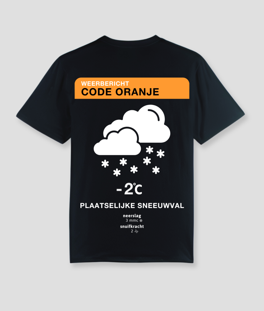 Het weerbericht voor Koningsdag 2025 is plaatselijke sneeuwval. Nou hoef ik de website bezoekers van pepschep natuurlijk niet uit te leggen wat we daar mee bedoelen haha… Kijk ook zeker de onderkant van het shirt wat dit design af maakt.