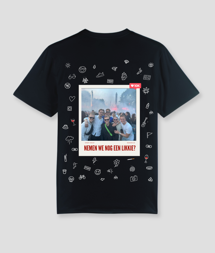 Dit shirt heeft een Instagram-post look, compleet met likes, reacties en ruimte voor je eigen tekst. Perfect om je favoriete festival-, vakantie- of uitgaansfoto te vereeuwigen en te dragen. Een speelse en persoonlijke manier om herinneringen mee te nemen naar elk feestje