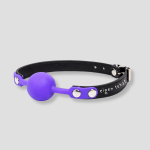 Deze paarse custom bal gag is een statement van speelsheid en durf. Een eigen quote of de naam van je partner erop zetten maakt het nog leuker en specialer. Het zwarte leren ontwerp gecombineerd met het opvallende paarse balletje maakt het een uniek product voor een leuk avondje. Het is perfect voor diegenen die samen met hun partner een stapje verder willen met intieme momenten.