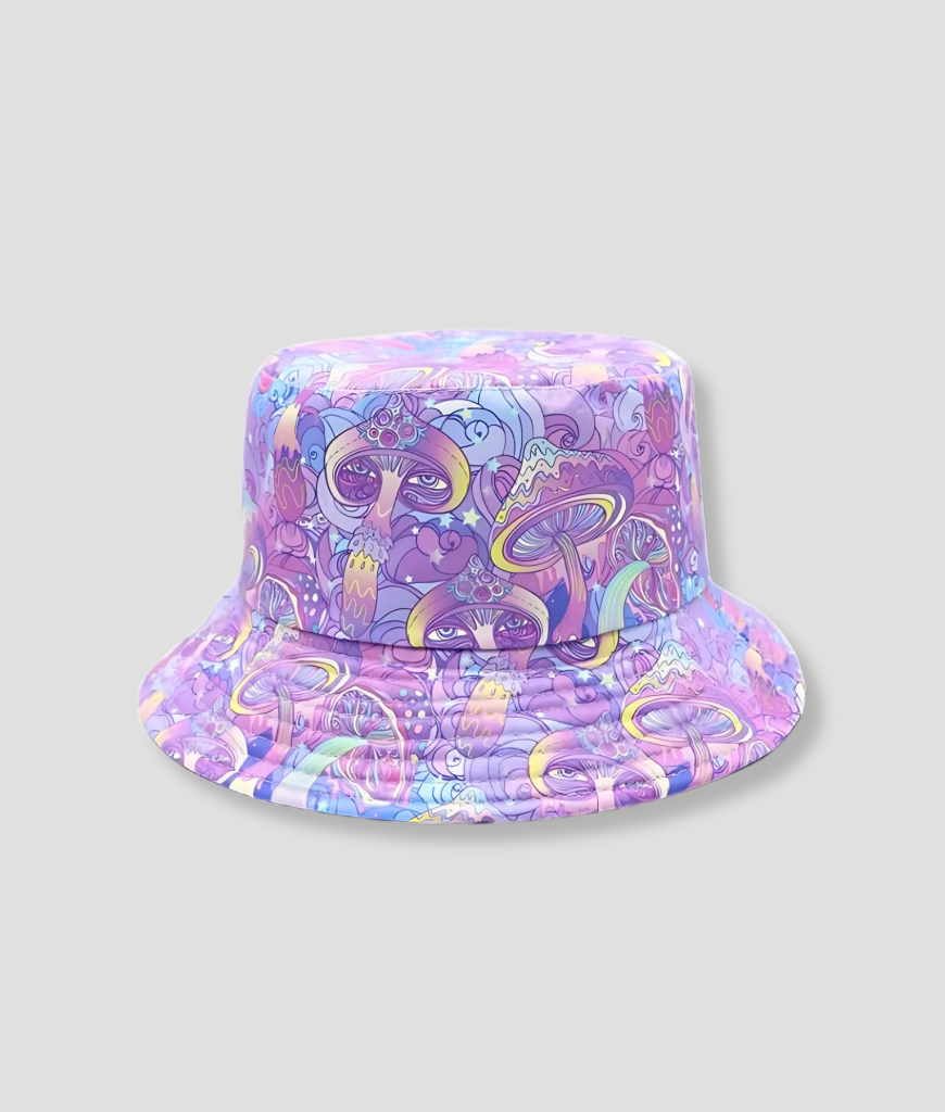 Het ontwerp van deze hoed is het perfecte huwelijk tussen speelsheid en stijl. De felle paarse kleur springt eruit, terwijl de psychedelische paddestoelen het geheel een dromerige, surrealistische sfeer geven. Of je nu op een zomerfestival bent of door de stad wandelt, deze hoed is een statement. Hij voegt niet alleen kleur toe, maar zorgt ervoor dat je outfit direct een verhaal vertelt. Het is een ontwerp dat past bij iemand die houdt van fun, avontuur, en een beetje mysterie.