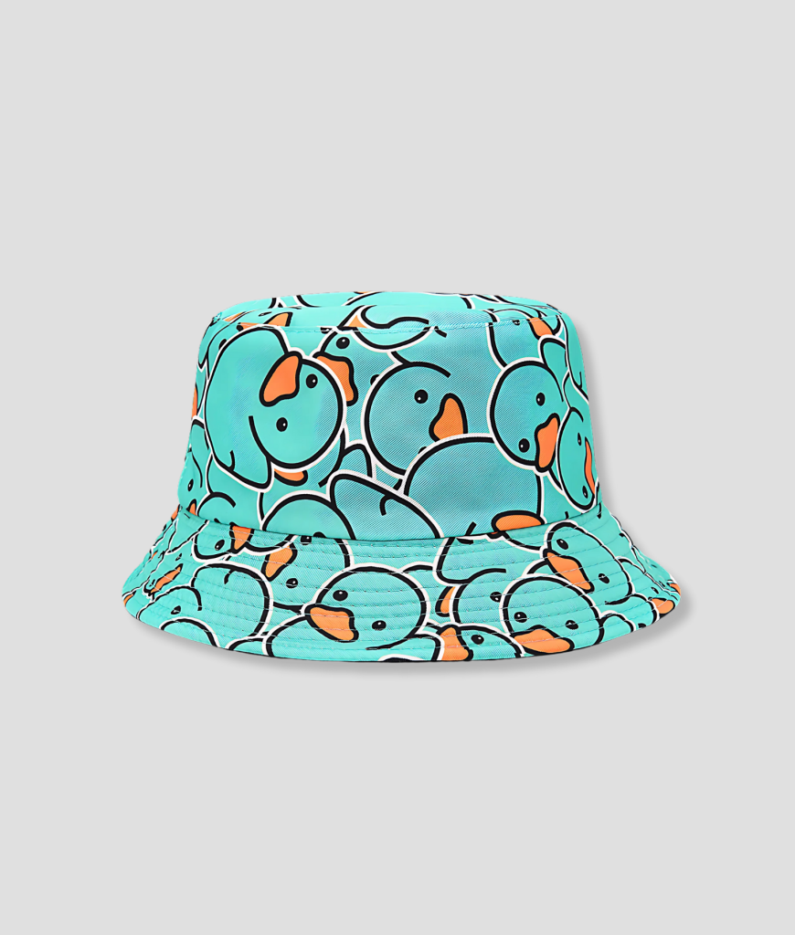 Deze turquoise bucket hat met vrolijke eendjes is de perfecte mix van speelsheid en stijl. Levendige kleuren en een fun patroon van eenden maken deze hoed ideaal voor een frisse, zomerse look! Een must-have voor wie van speelse en kleurrijke accessoires houdt.