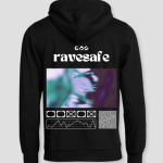 Deze zwarte hoodie is een must-have voor iedereen die de rave-scene omarmt. Het opvallende “ravesafe” ontwerp op de achterkant benadrukt de veiligheid en de vibe van het ravecircuit, terwijl de op de achtergrond gebruikte psychedelic kleuren je een speelse, energieke uitstraling geven.