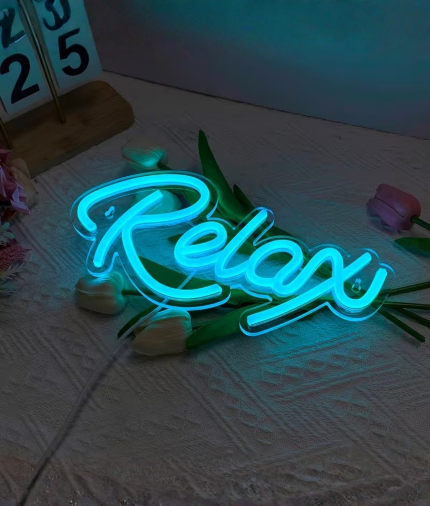 Relax Neon voelt als dat moment waarop je eindelijk neerploft en alles even pauze zet. Het blauwe licht vult de kamer met een heldere maar zachte gloed die je uitnodigt om te zitten, te ademen en het tempo te laten zakken. Geen drukte, geen gedoe, gewoon even niets.