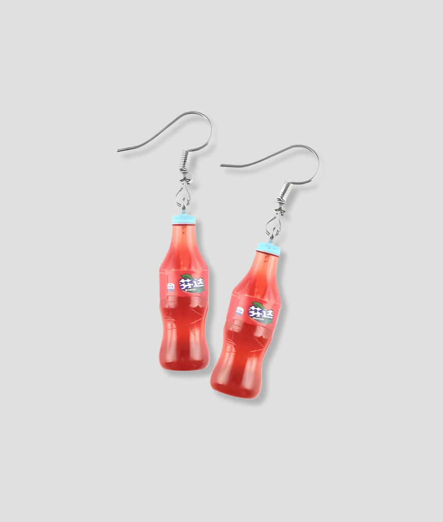 Rood Drankje Oorbel met een mini flesje dat doet denken aan zoete siroop of een feestelijk shotje – fel, fris en klaar om elk outfit een smaakvolle twist te geven.