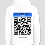 De SCAN ME hoodie is niet zomaar een kledingstuk, het is een interactieve ervaring. De achterkant heeft een QR-code die je kunt personaliseren met je eigen tekst. De tekst “Durf te scannen” zorgt ervoor dat je een nieuwsgierigheid opwekt bij anderen. Maak de hoodie uniek door de code aan te passen aan jouw wensen.