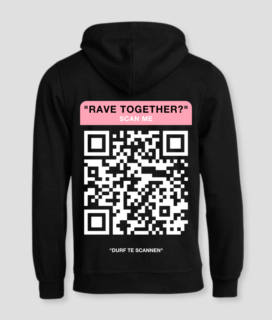Deze hoodie is ideaal voor feesten en festivals. De opvallende roze label en de scannable QR-code maken je outfit direct uniek en interactief. Je zult de show stelen en gesprekken starten met iedereen die nieuwsgierig is naar wat er achter de code zit.