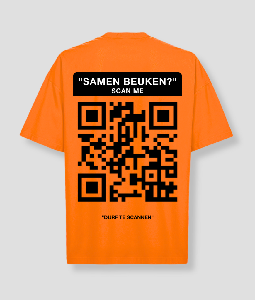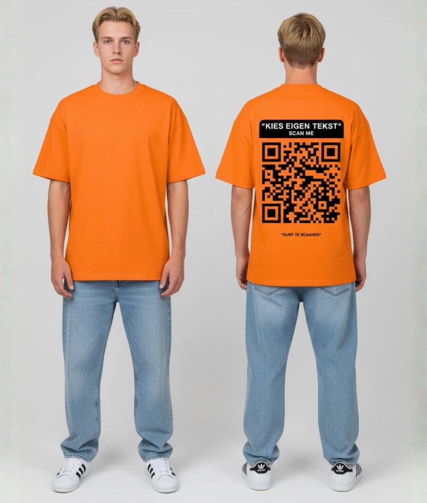 Maak kennis met ons QR Social Oversized Shirt! Het maken van vrienden op een festival of rave was nog nooit zo makkelijk. Met een opvallende QR-code op de achterkant kun je moeiteloos iemand volgen of een dm sturen, kies een opdruk die bij jou past. De opdruk zit op de achterkant.